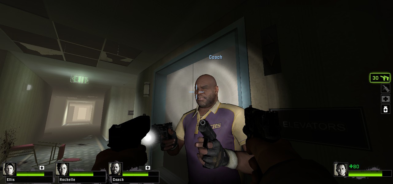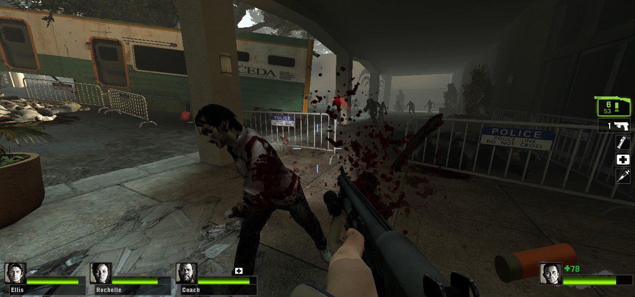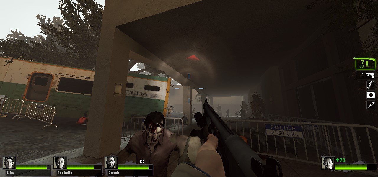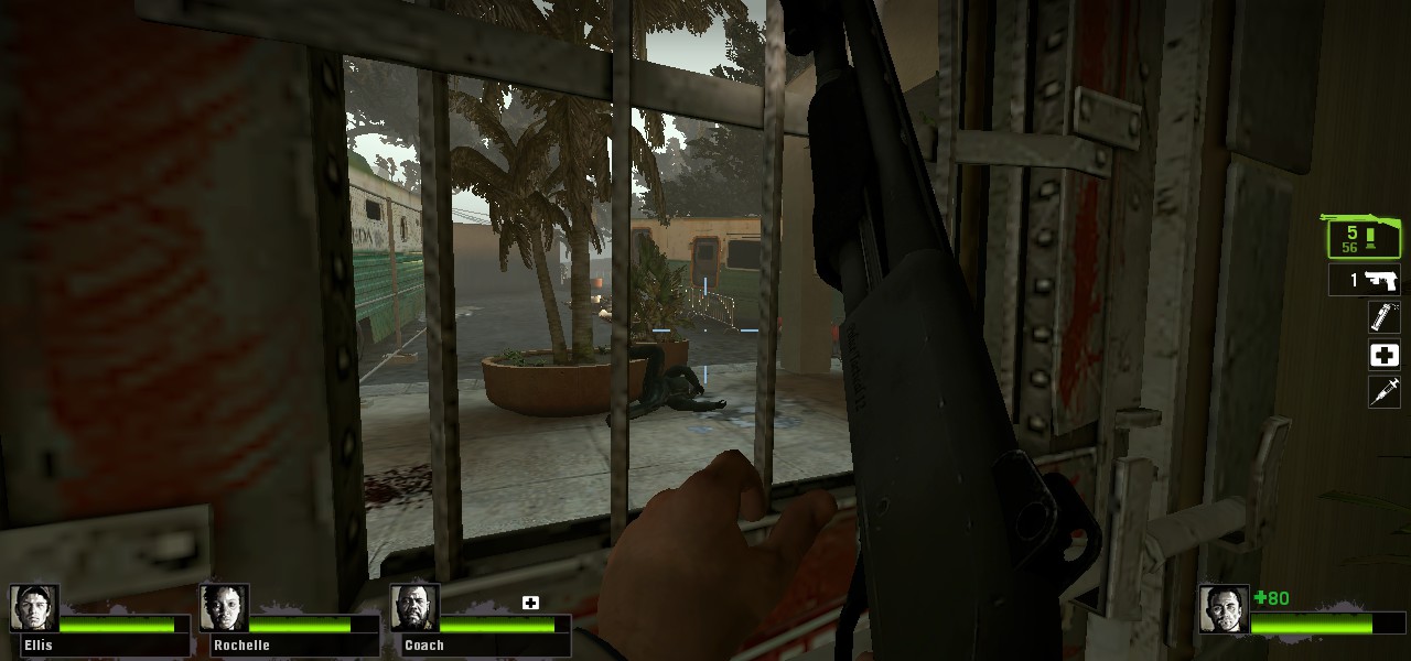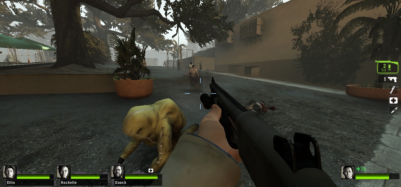 و لهذا السعر الممتاز للعبه سارعت بشرائها ، و جهازي بشكل مفاجئ استطاع تشغيل اللعبة بشكل مقنع و استمتعت حقيقة لكن لم استطع الاعتياد على الفأرة و الكيبورد … و للأسف يبدو ان اللعبة لاتدعم كنترولر الـXbox360 لكن سأبحث اكثر عن هذا الموضوع . هذا مظهر اللعبة على جهازي ، مع التذكير بالعيب الكبير هو سقوط الفريم ريت بشكل قوي عند تواجد عناصر كثيرة على الشاشة ، و في حالة L4D2 هو تواجد عدد كبير من الزومبيز في نفس الوقت .
