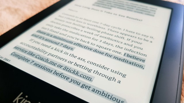 انا مهووس بفكرة المزامنه، احرص على استخدام خدمات تقدم هذه الميزه، كمثال نتفلكس و اليوتيوب و ايضا الكيندل، لمن لا يعلم المزامنه، هي ان تبدأ من نفس النقطه اللتي توقفت فيها حتى لو استخدمت جهازا اخر. بالنسبة للكيندل بيبروايت، استخدمه فقط في البيت و غالبا قبل النوم، و عندما اذهب للعمل صباح اليوم التالي، فاني استخدم تطبيق الهاتف (او تطبيق اللابتوب) و اكمال الكتاب من نفس الصفحه اللتي توقفت بها مساء.. زيادة على هذا، جميع الـHighlights سيتم مزامنتها و يمكن الوصول اليها من اي جهاز او حتى تسليمها تلقائيا لموقع Goodreads في حال رغبت ذلك.