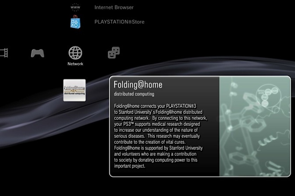 اذا كنت من مالكي البلايستيشن 3 في أول سنواته، قد لا تبدو خدمة Folding@Home غريبه عليك، فقد دعمت سوني الخدمه لخمسة سنوات بين عامي 2007 و 2012، مستفيدة من معالج الـ Cell الخارق في زمنه. لاعبي البلايستيشن 3 لم يخيبوا الظن، بأن 15 مليون لاعب تبرعوا بـ 100 مليون ساعه لمشروع F&H و جعلوا المشروع ينتقل لمستويات لم يتخيلوها!